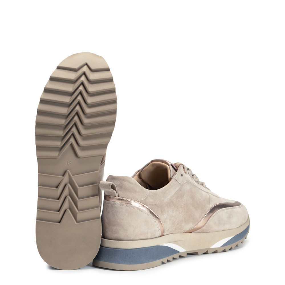 Жіночі кросівки бренду Bosca з натуральної замші бежевого кольору – базова модель, яка стане невід'ємною частиною повсякденного гардеробу.