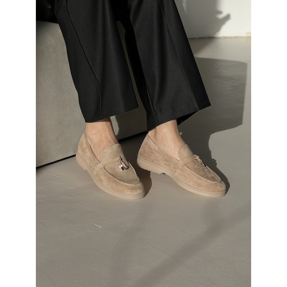 Класичні жіночі лофери бренду Bosca з натуральної замші бежевого кольору - це поєднання стилю, елегантності та високоякісних матеріалів взуття.