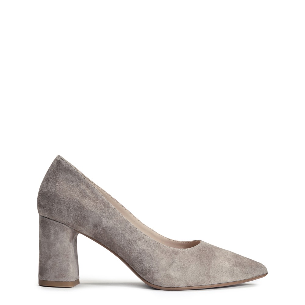 Бежевi замшеві демісезонні туфлі на підборі