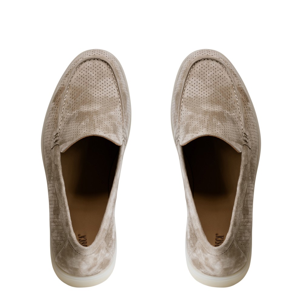 Бежевi замшеві літні лофери