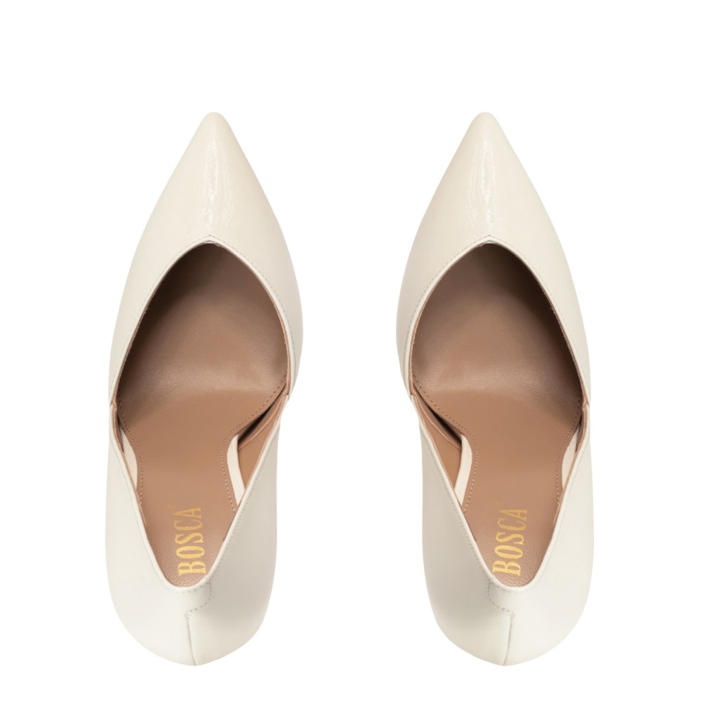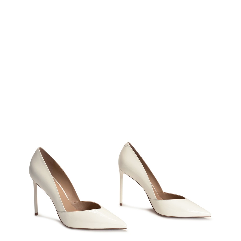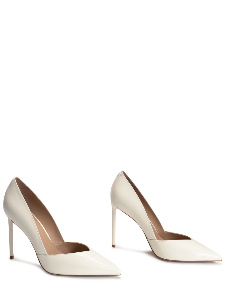 Білі лакові демісезонні туфлі на підборі