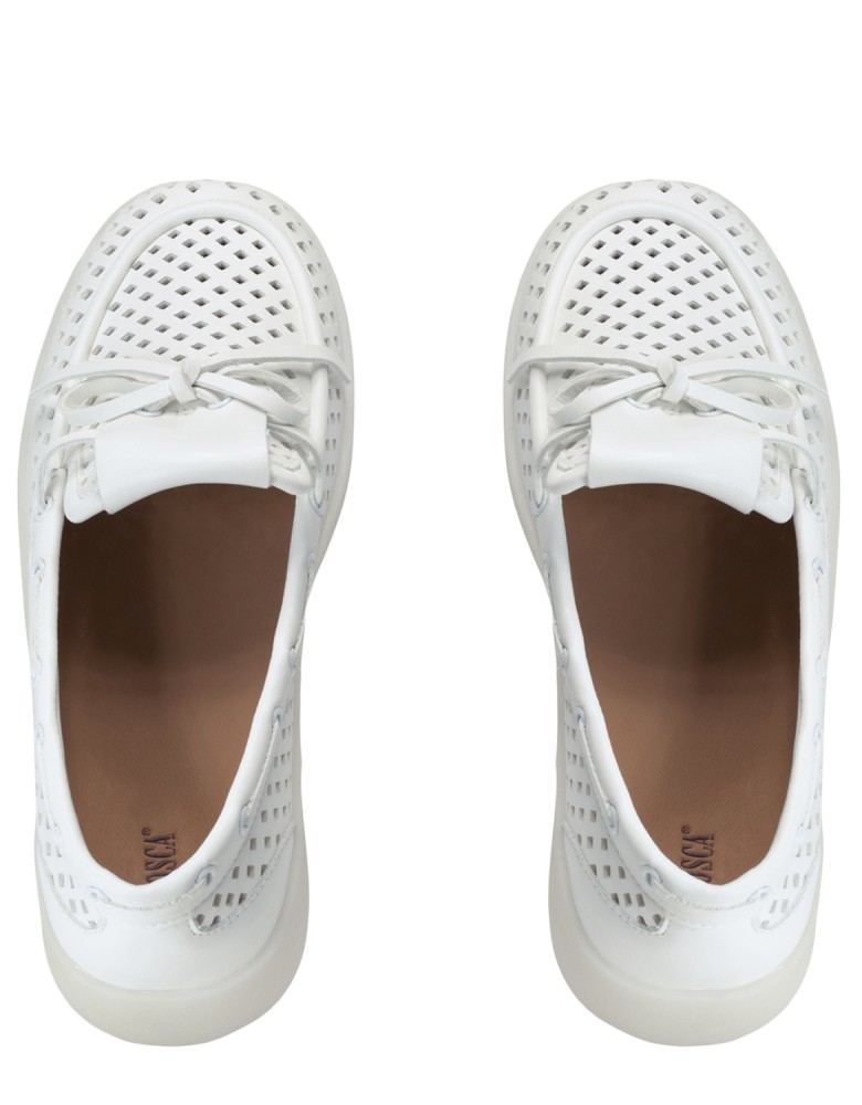 Білі шкіряні літні лофери