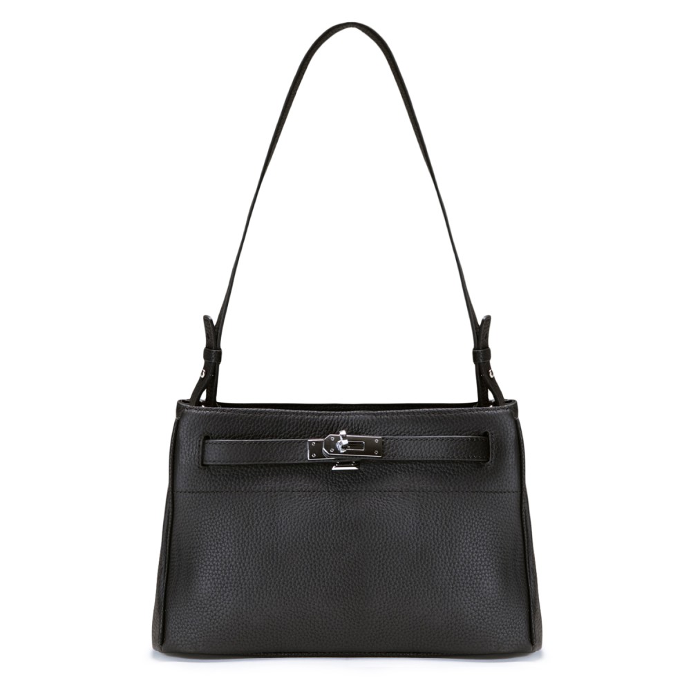 Чорна шкіряна середня жіноча сумка