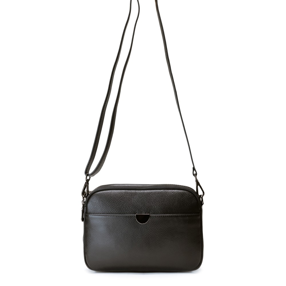 Чорна шкіряна середня жіноча сумка