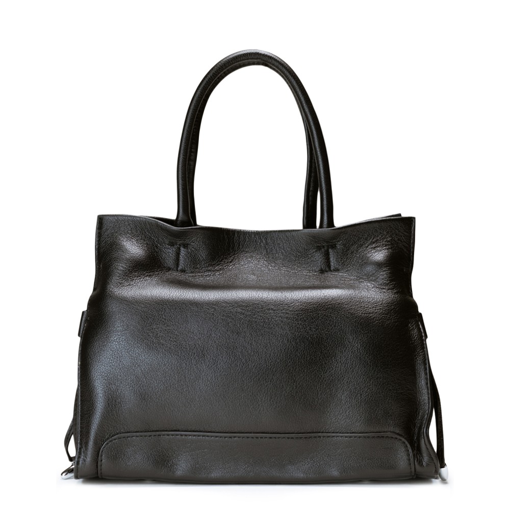 Чорна шкіряна середня жіноча сумка