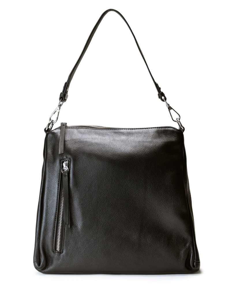 Чорна шкіряна середня сумка