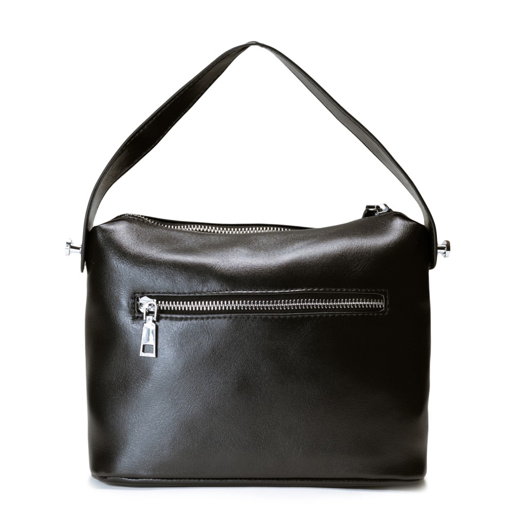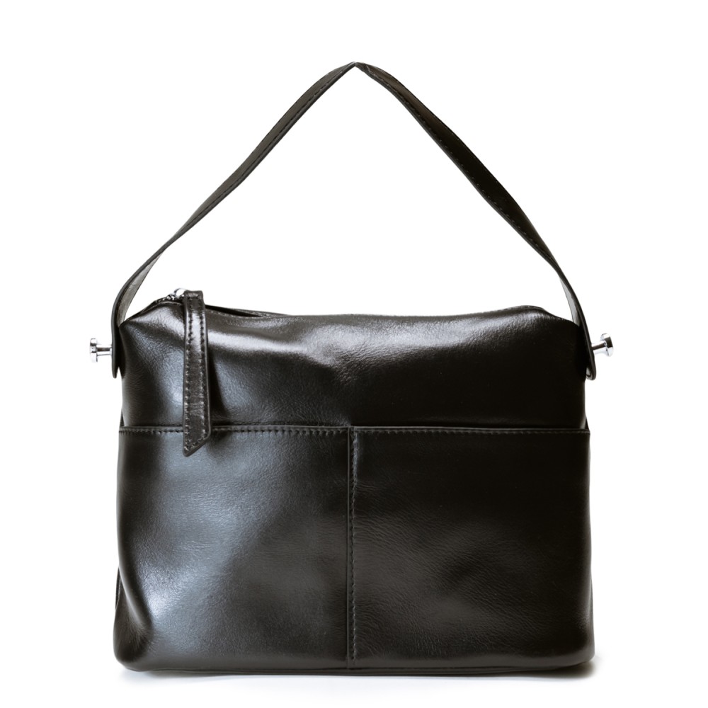 Чорна шкіряна середня жіноча сумка