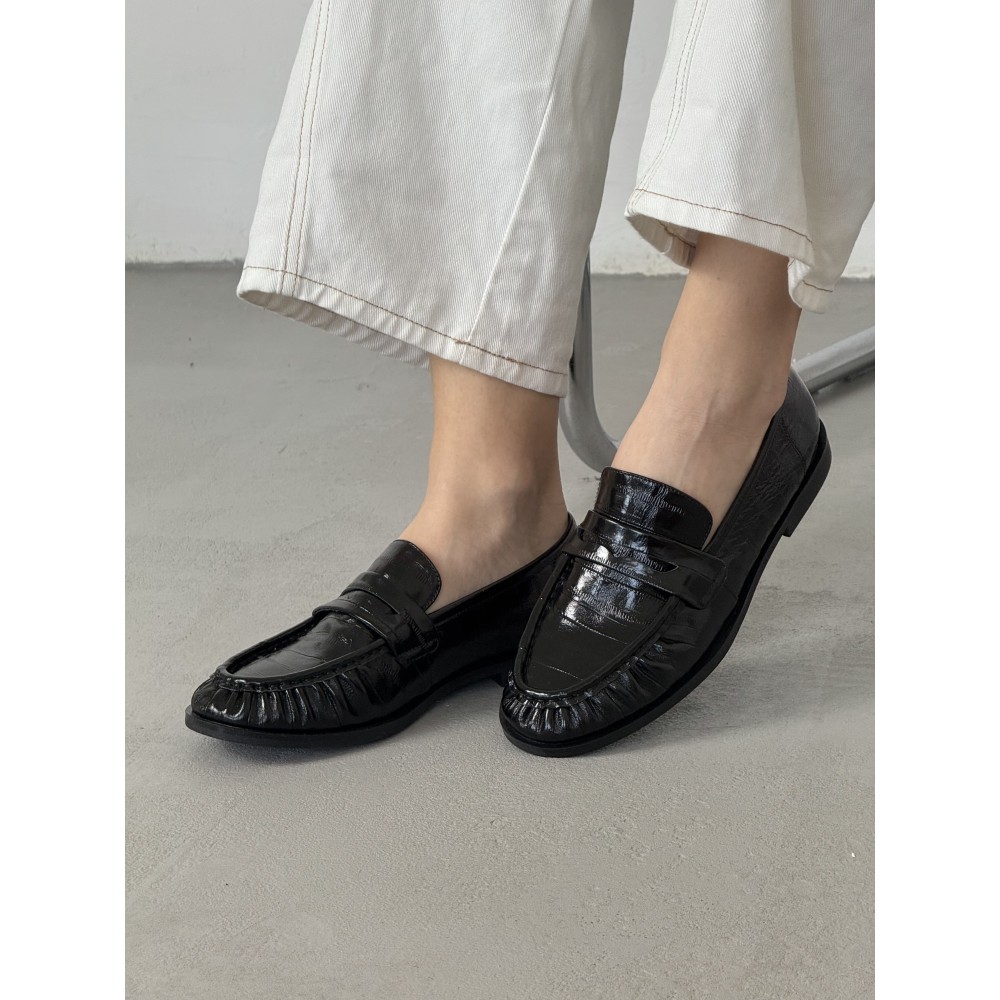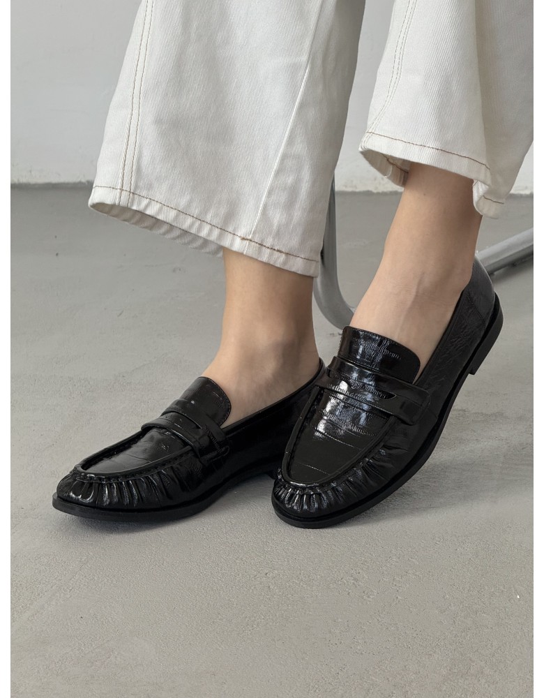 Чорні лакові демісезонні лофери