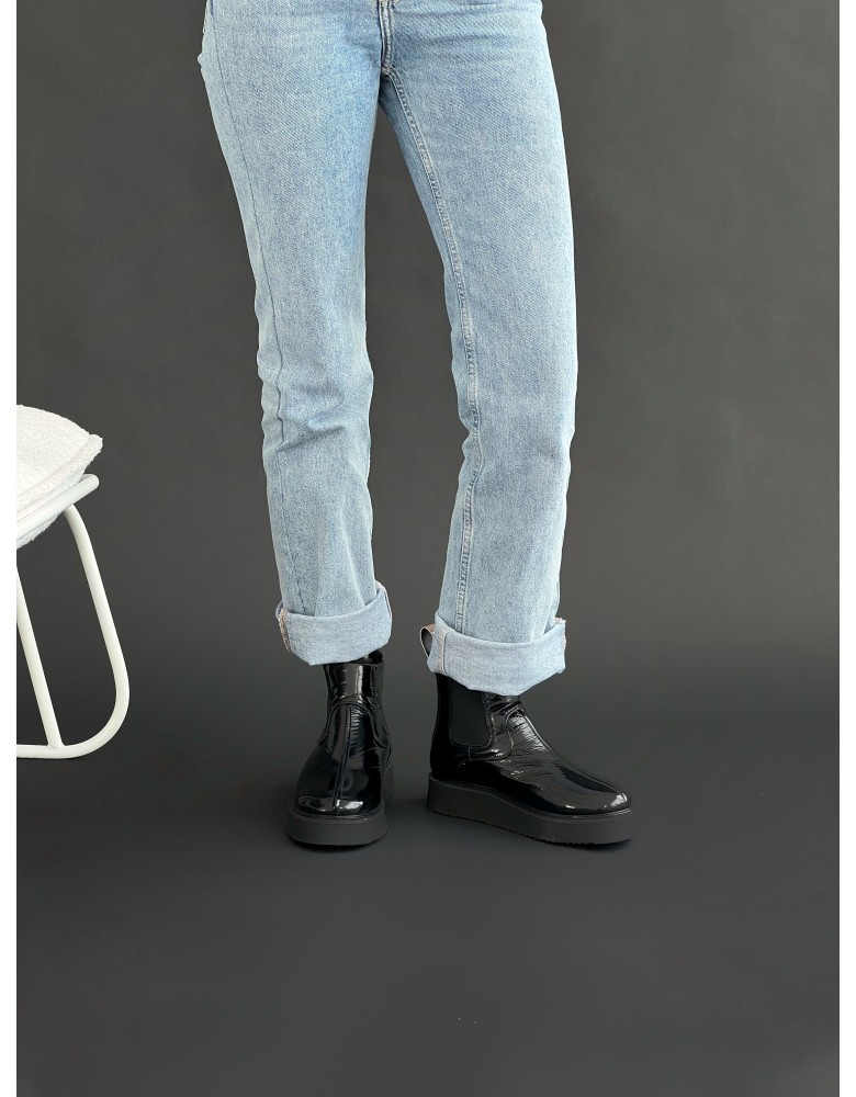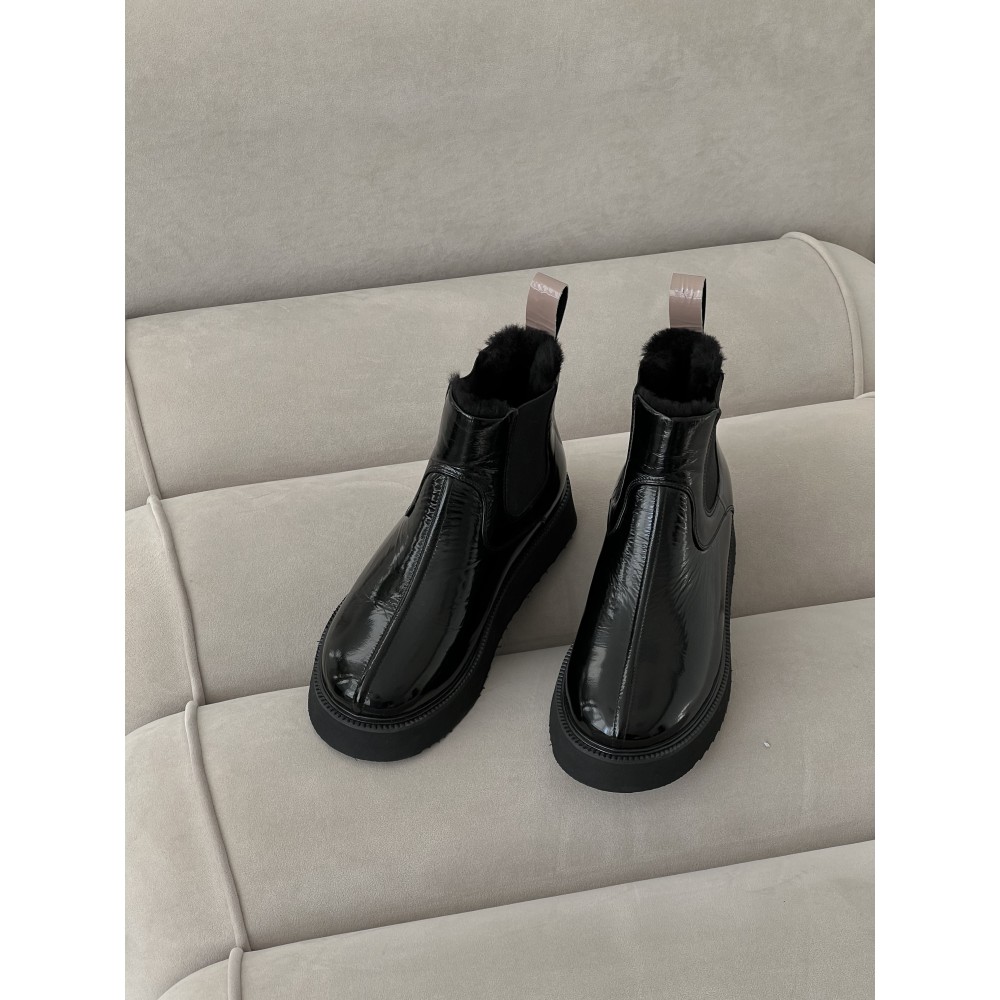 Чорні лакові зимові уггі