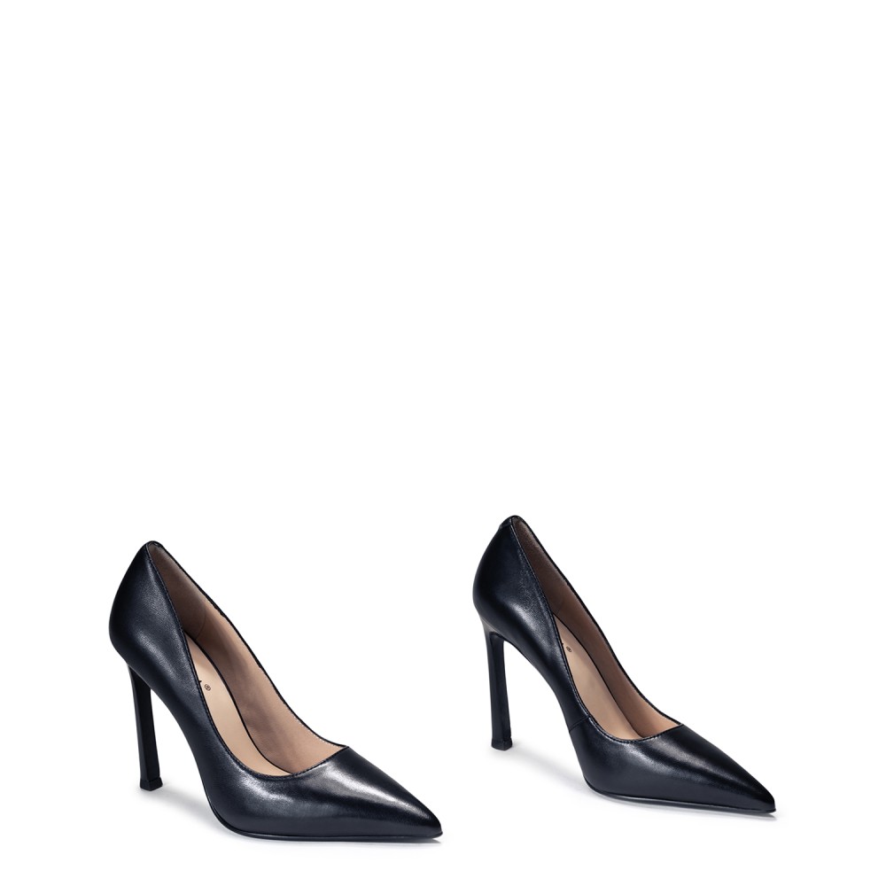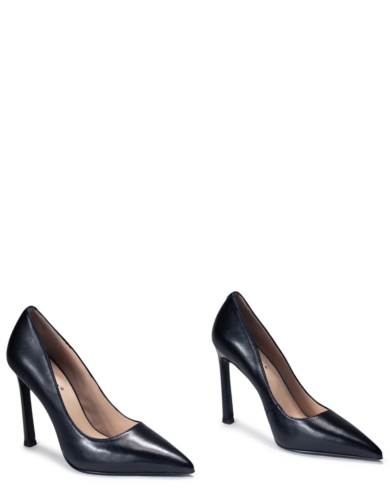 Чорні шкіряні демісезонні туфлі на підборі