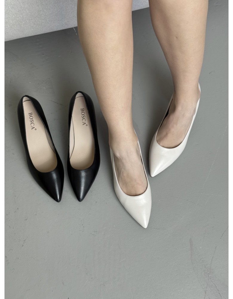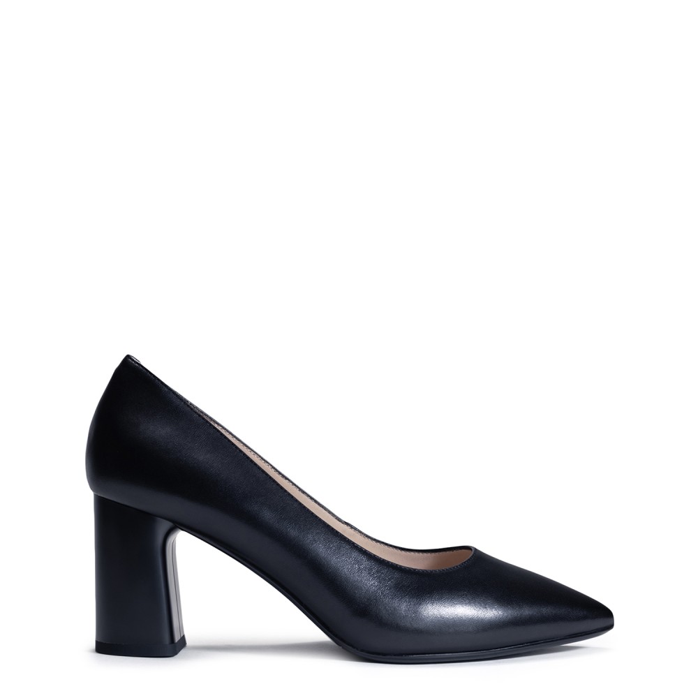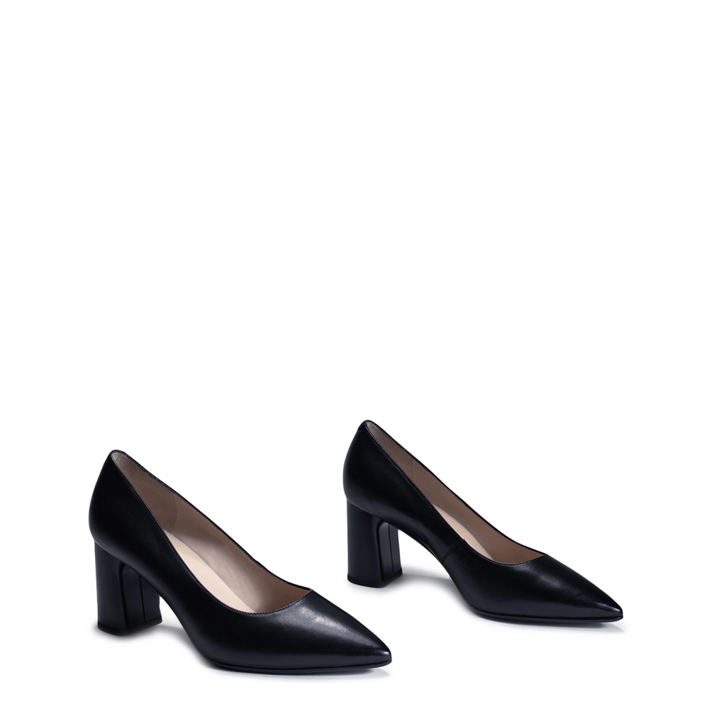 Чорні шкіряні демісезонні туфлі на підборі