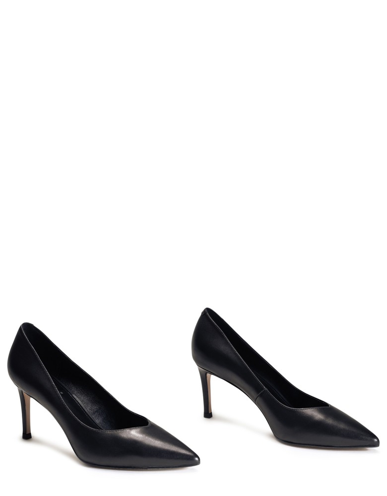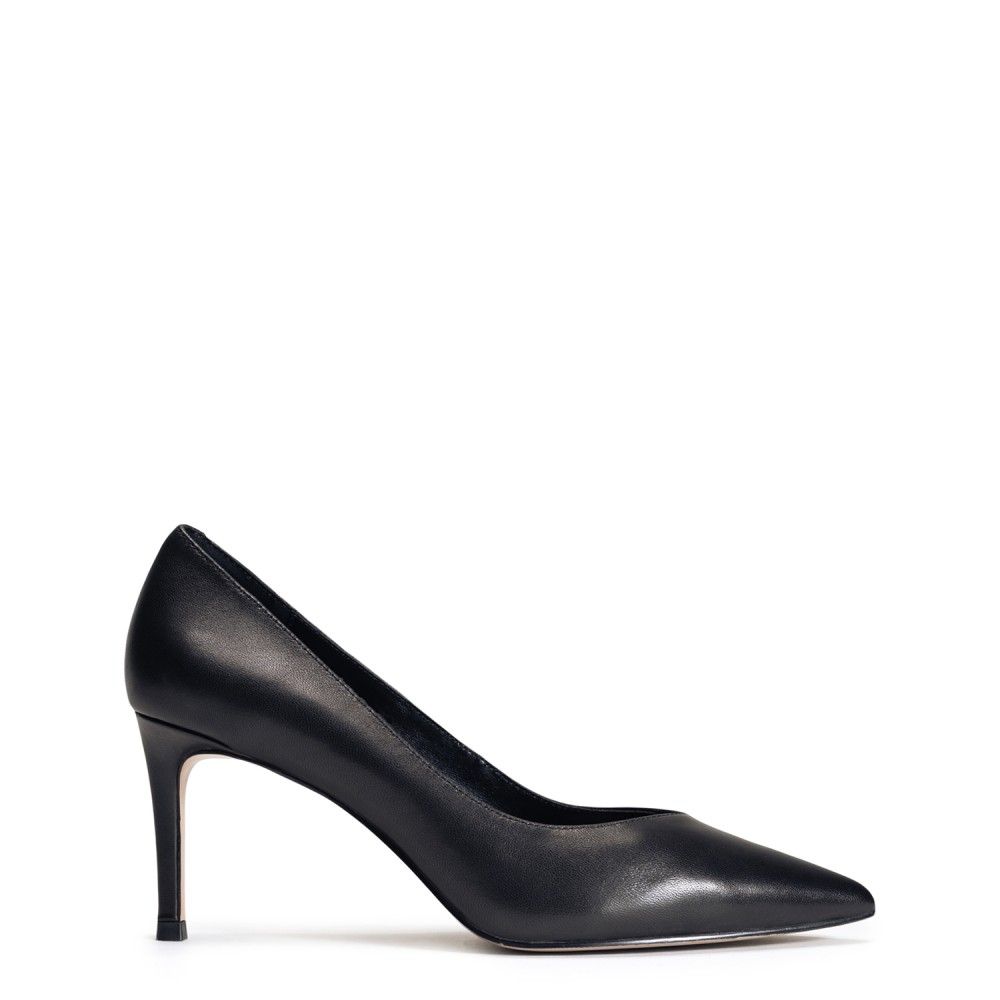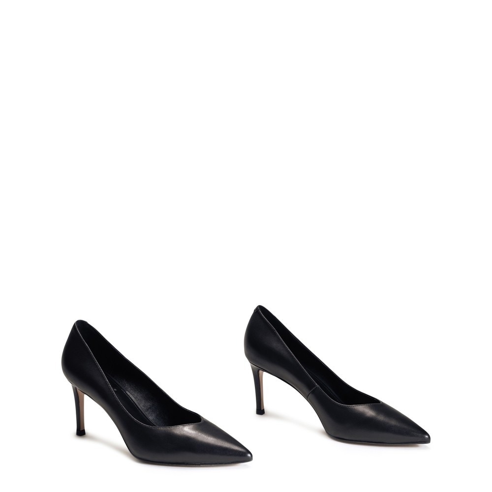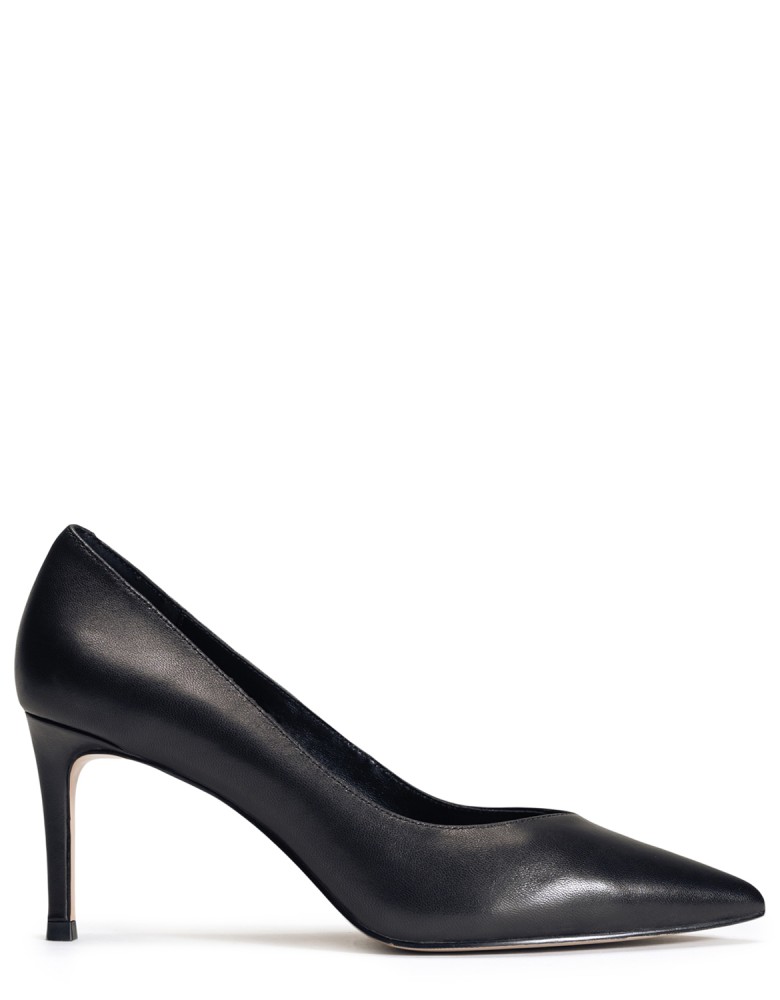 Чорні шкіряні демісезонні туфлі на підборі