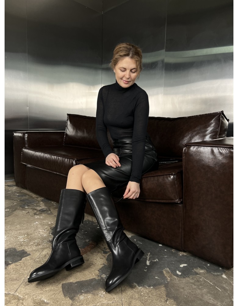 Чорні шкіряні зимові чоботи