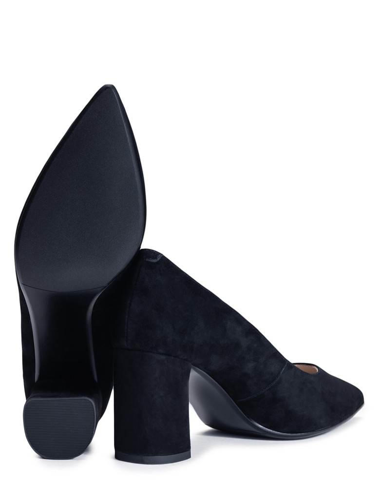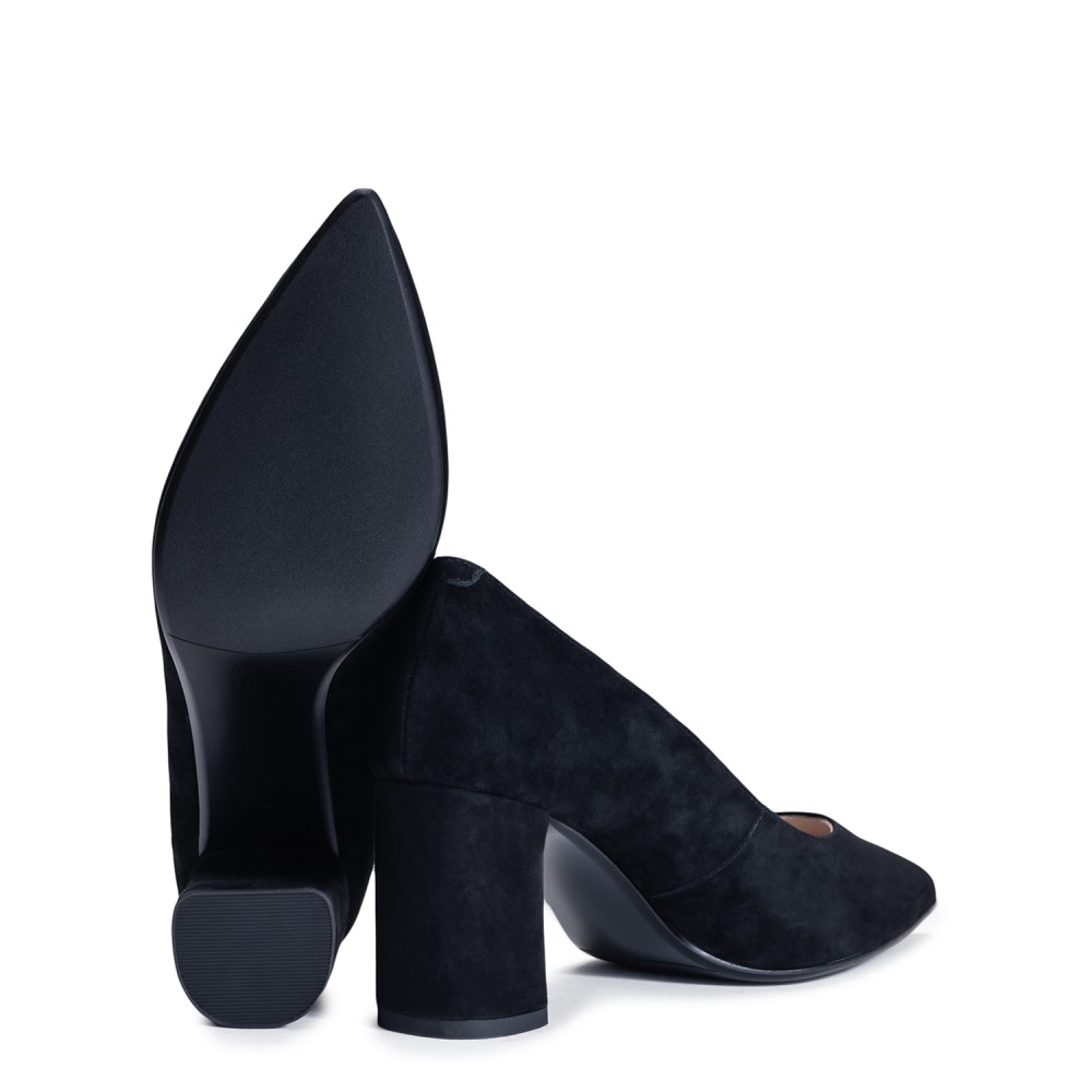 Чорні замшеві демісезонні туфлі на підборі