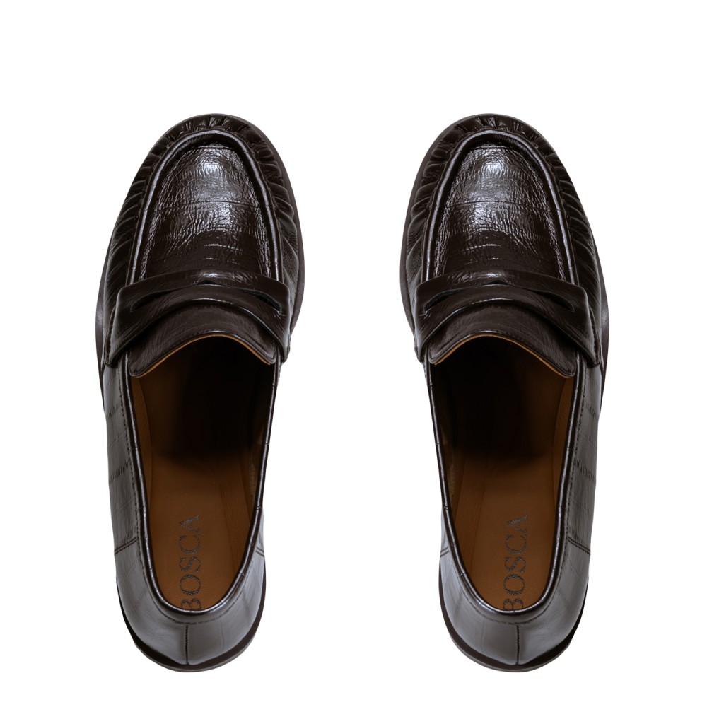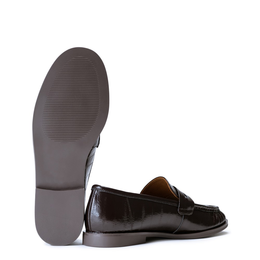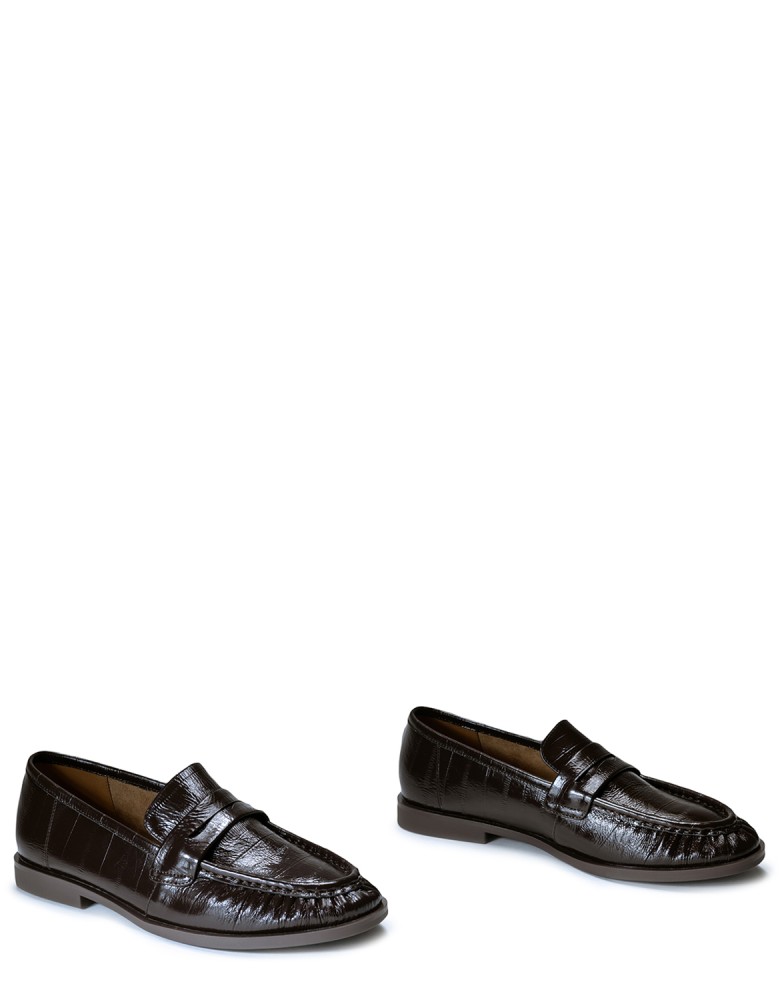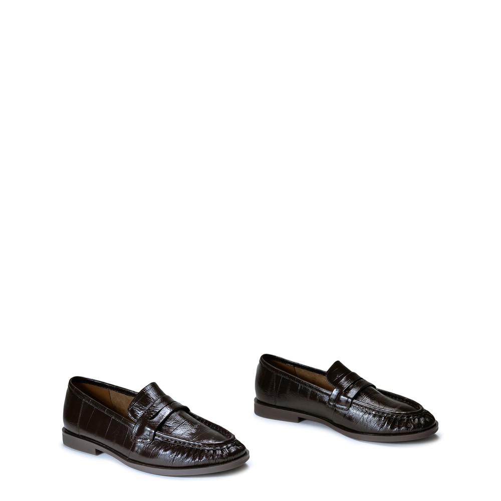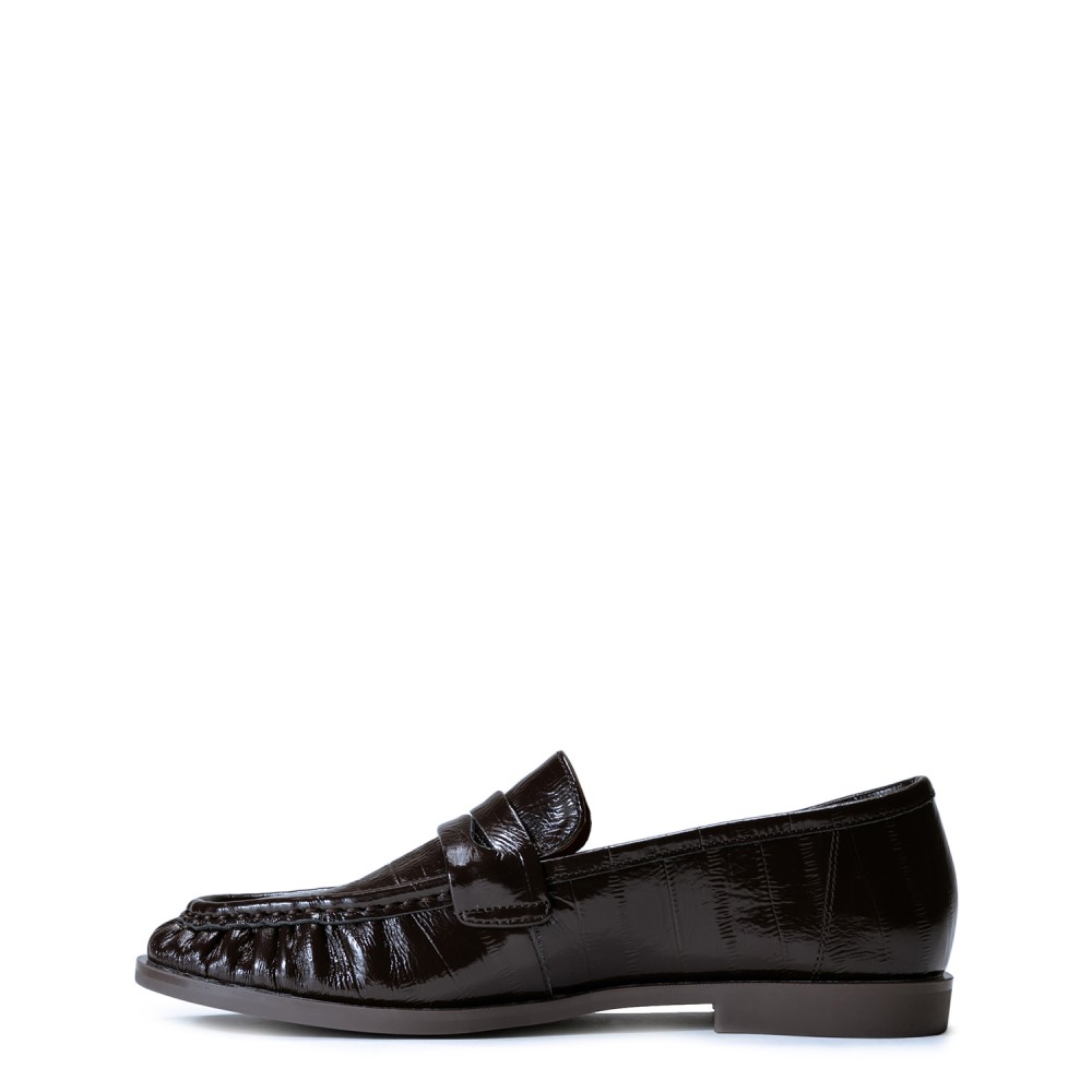 Коричневі лакові демісезонні лофери