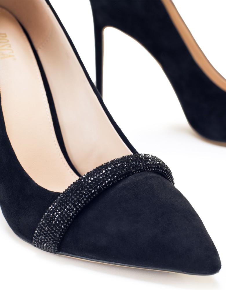 Черные замшевые демисезонные туфли на каблуке