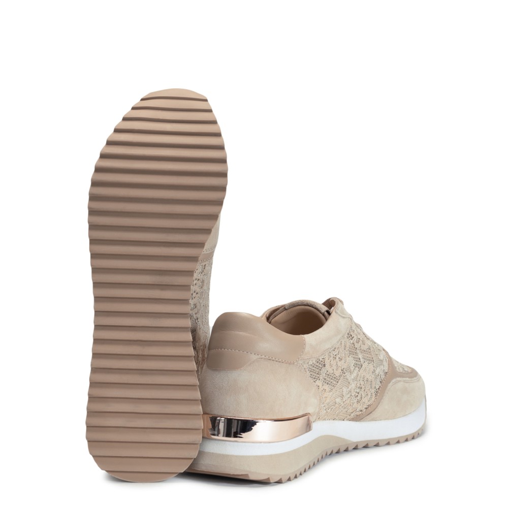 Бежевые кожаные летние кроссовки