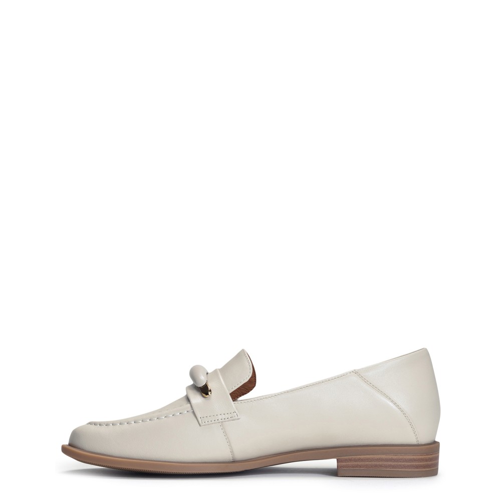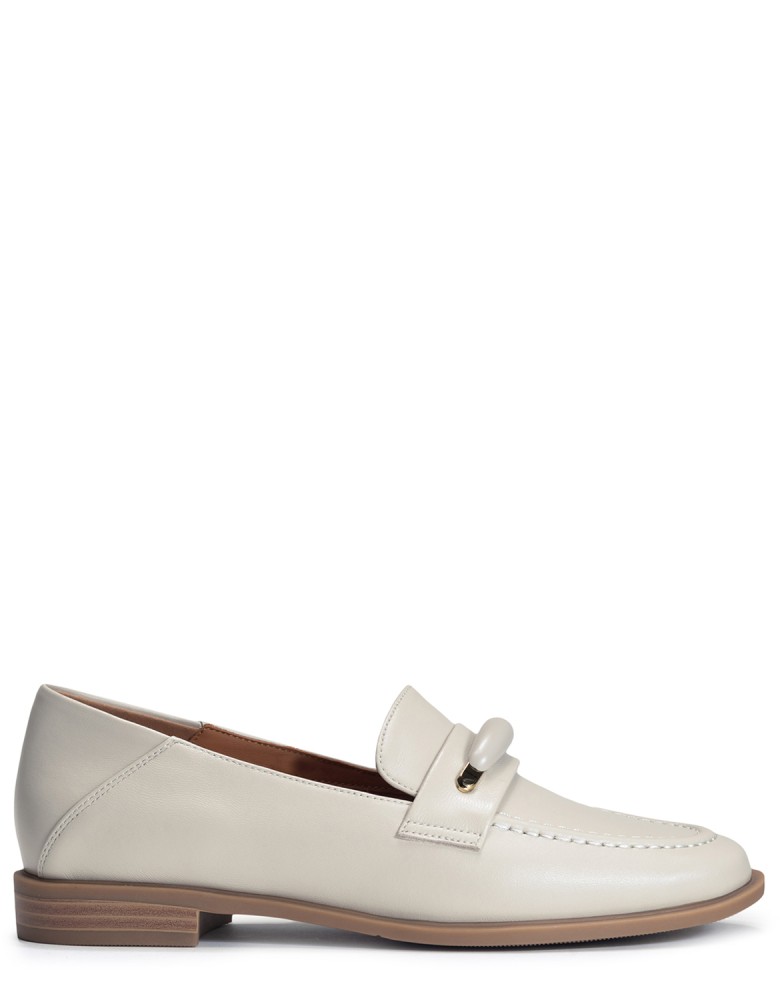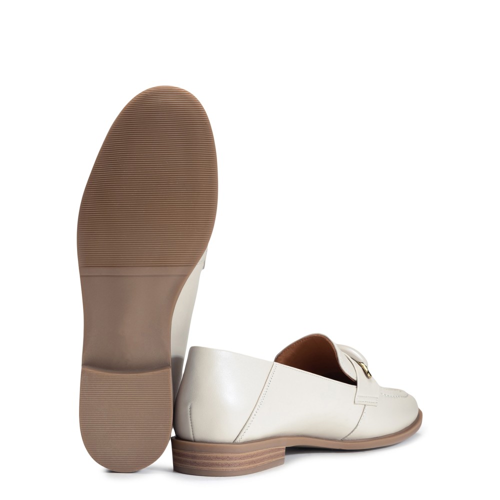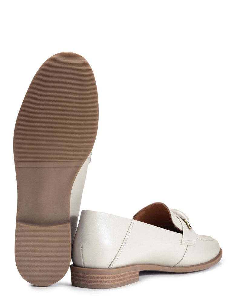 Бежевые кожаные демисезонные лоферы