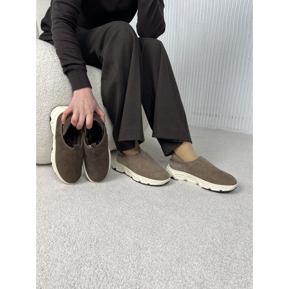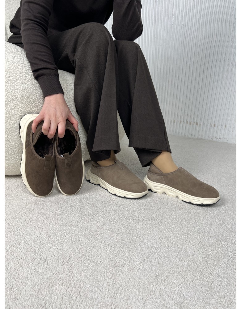 Бежевые замшевые зимние кроссовки