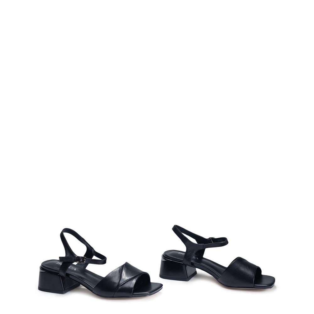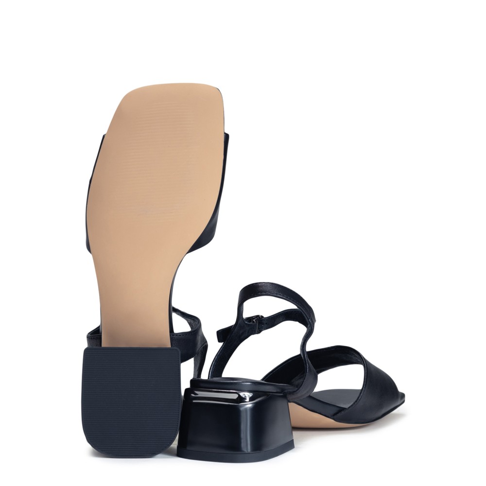 Черные кожаные летние босоножки