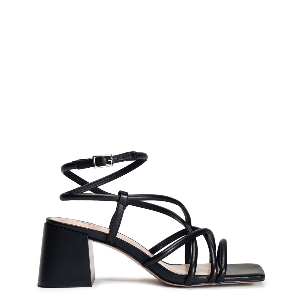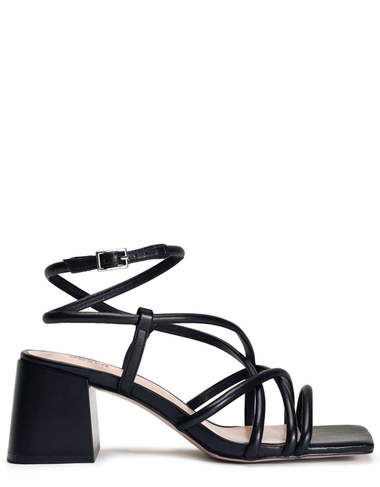 Черные кожаные летние босоножки