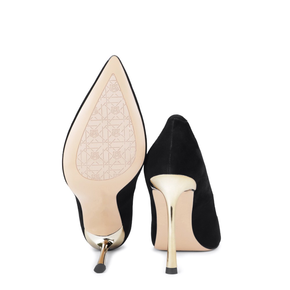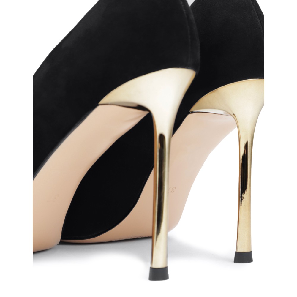 Черные замшевые демисезонные туфли на каблуке