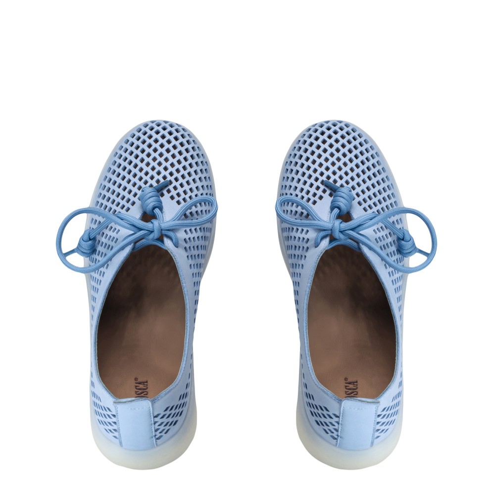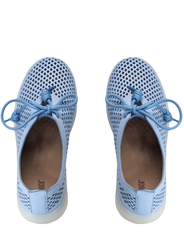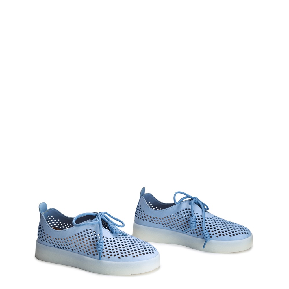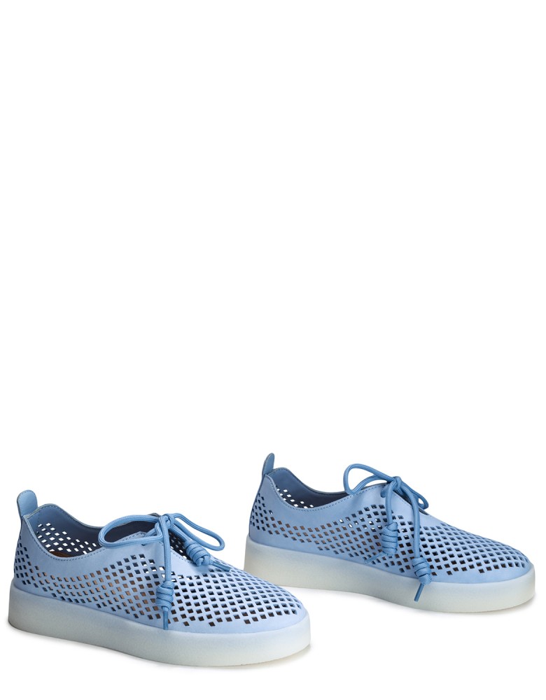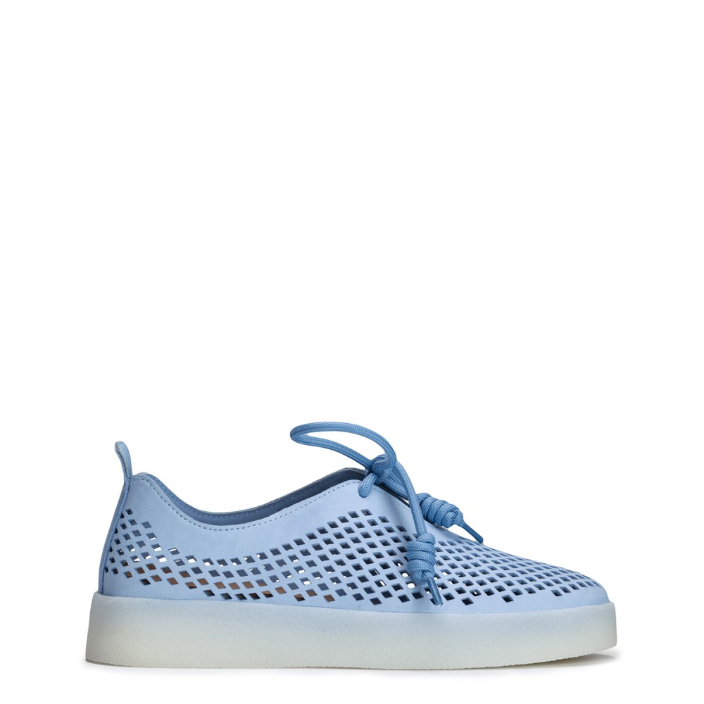 Голубые кожаные летние кеды
