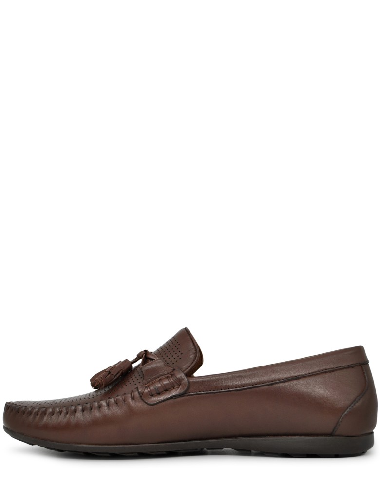 Коричневые кожаные летние мокасины