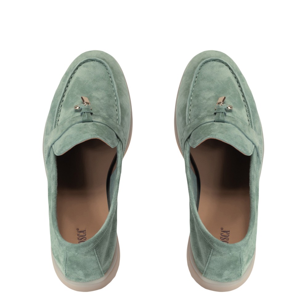 Зелені замшеві демісезонні лофери